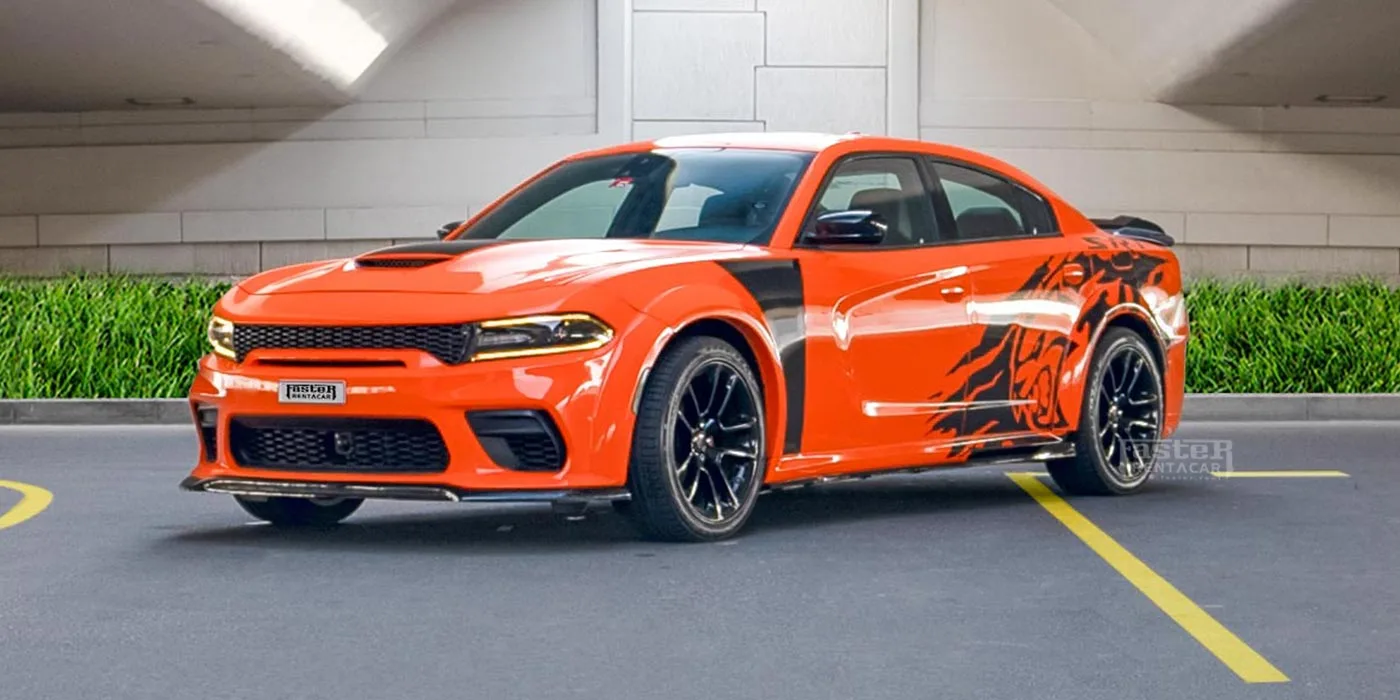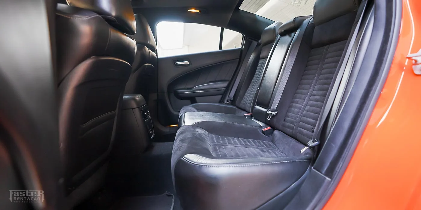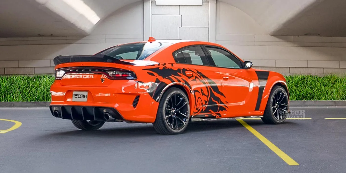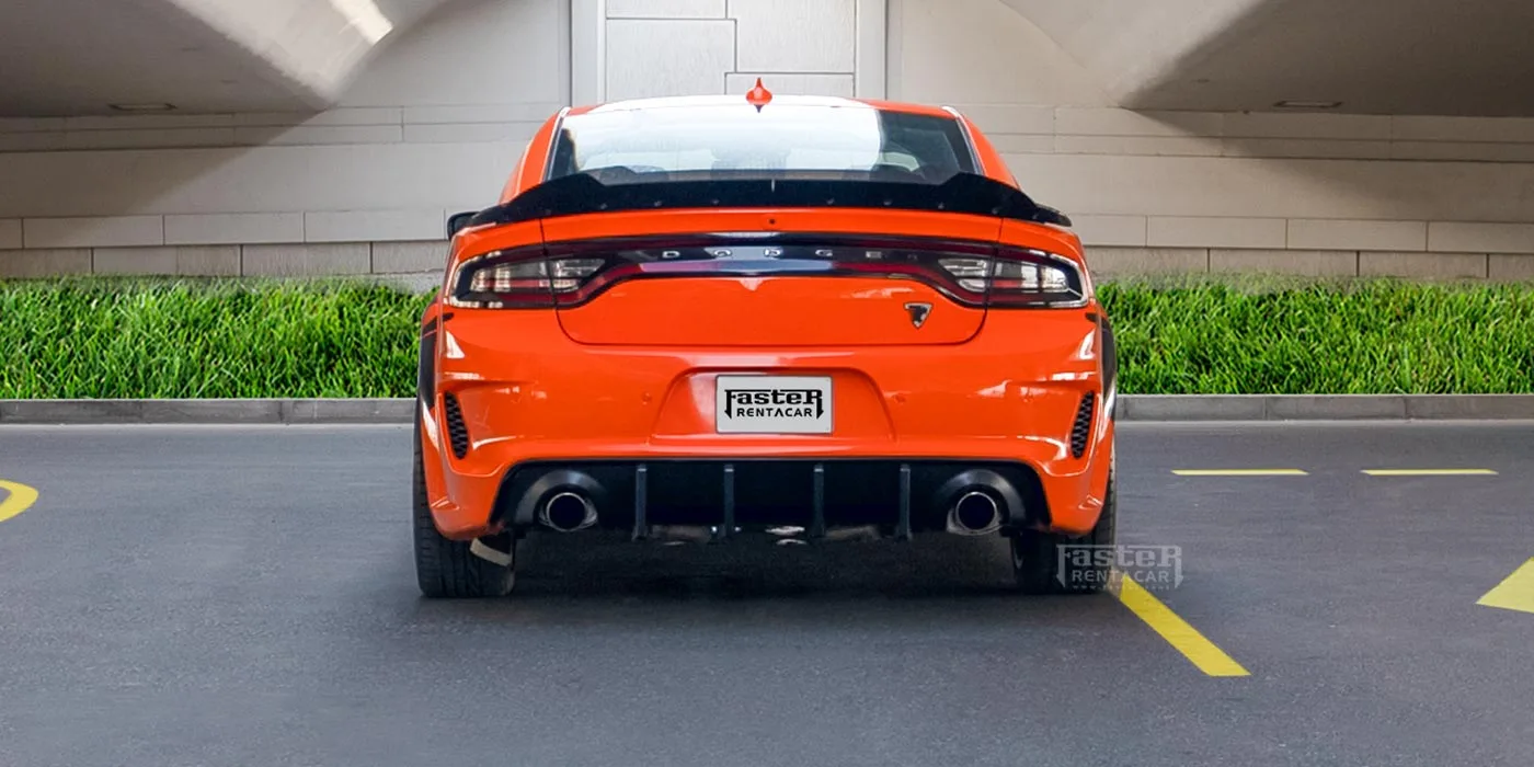 . دودج تشارجر البرتقالي ( Dodge Charger RT V8 2020 ), سيارات رياضية مُدرجة من قبل درايف اسكوير لتأجير السيارات. - 4-أبواب سيارات رياضية تتسع لـ 2 ركاب و 2 حقيبة (حقائب) متوسطة الحجم.