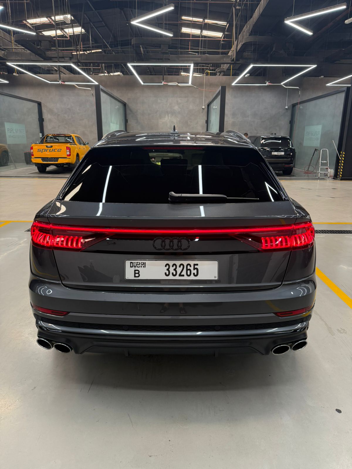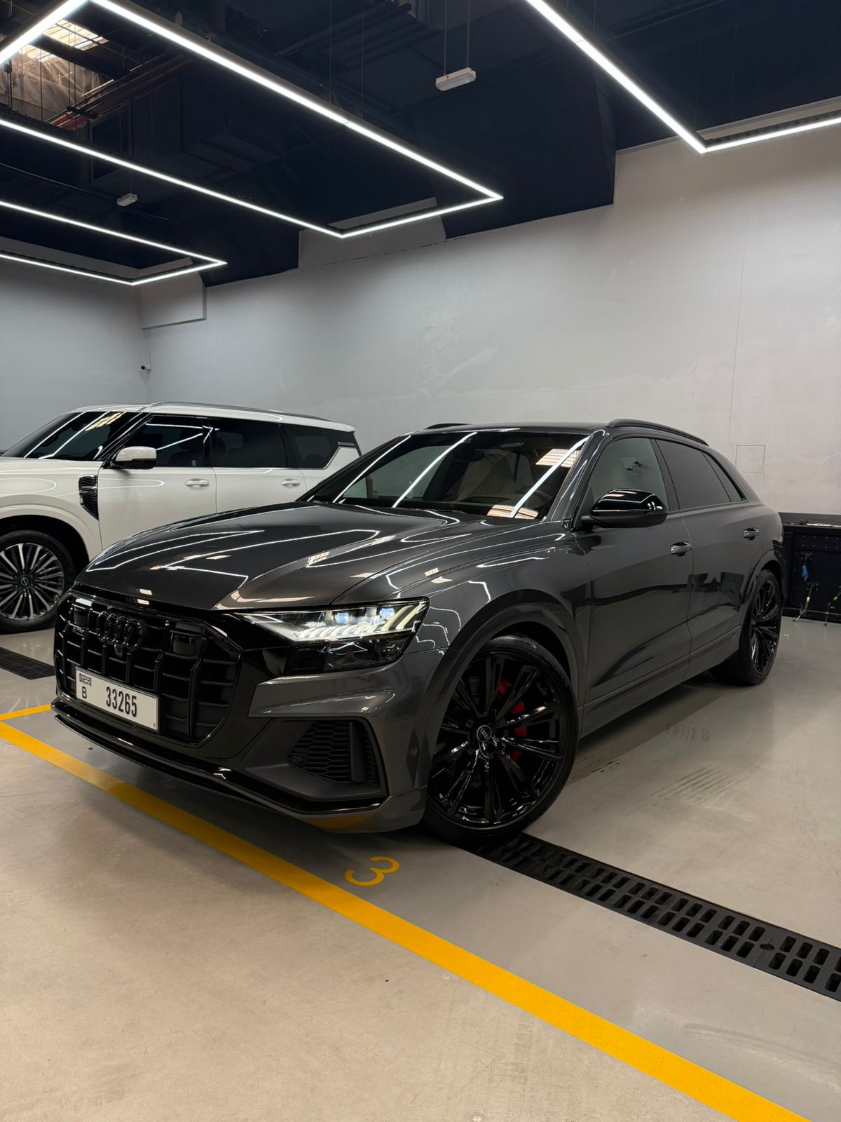 . اودي كيو 8 رمادي ( AUDI SQ8 Grey Best Price ), سيارات دفع رباعى مُدرجة من قبل درايف اسكوير لتأجير السيارات. - 4-أبواب سيارات دفع رباعى تتسع لـ 4 ركاب و 3 حقيبة (حقائب) متوسطة الحجم.