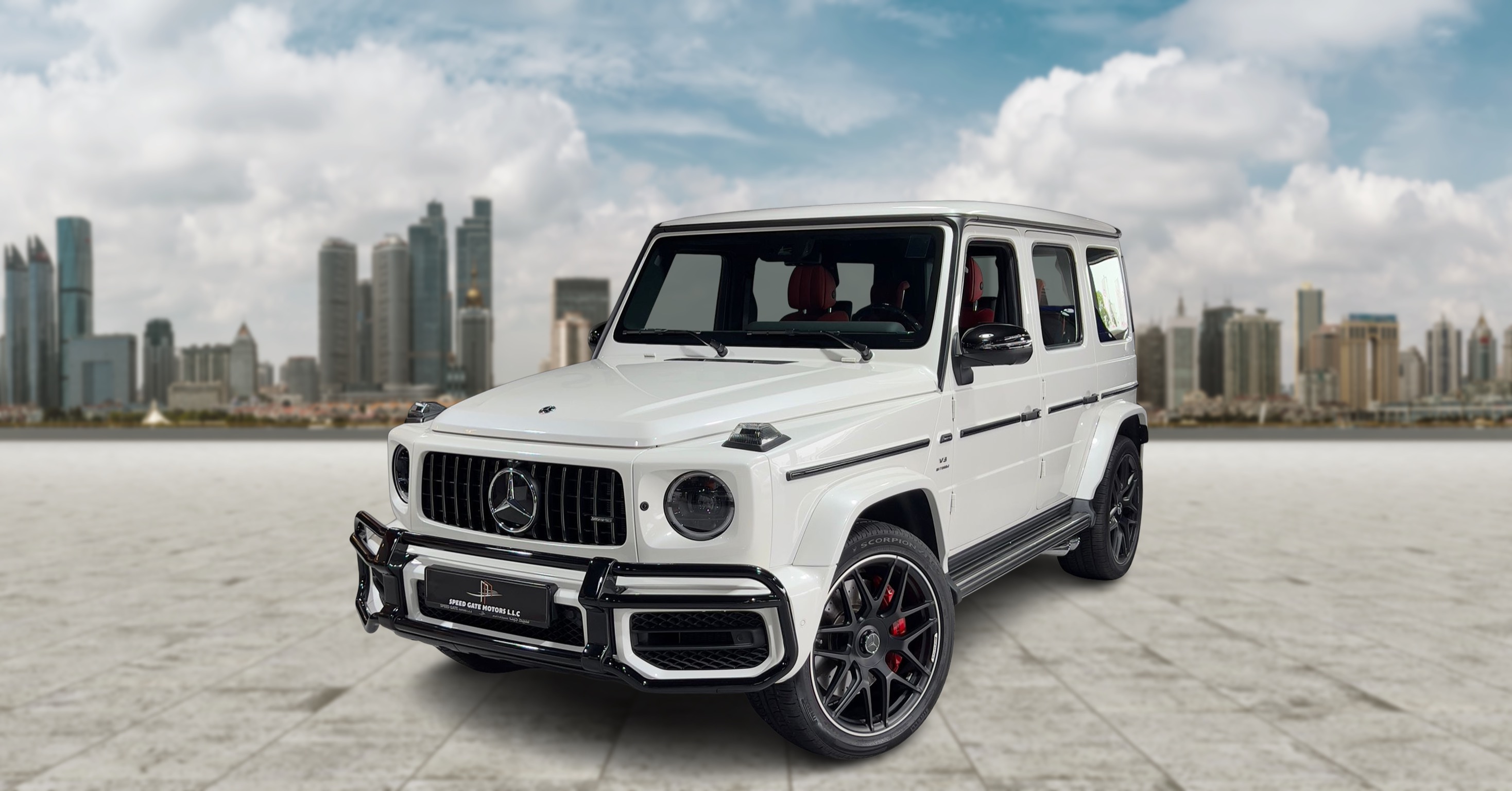 . مرسيدس بنز جي كلاس أبيض ( Mercedes AMG G63 full option ), سيارات دفع رباعى مُدرجة من قبل درايف اسكوير لتأجير السيارات. - 4-أبواب سيارات دفع رباعى تتسع لـ 5 ركاب و 1 حقيبة (حقائب) متوسطة الحجم.
