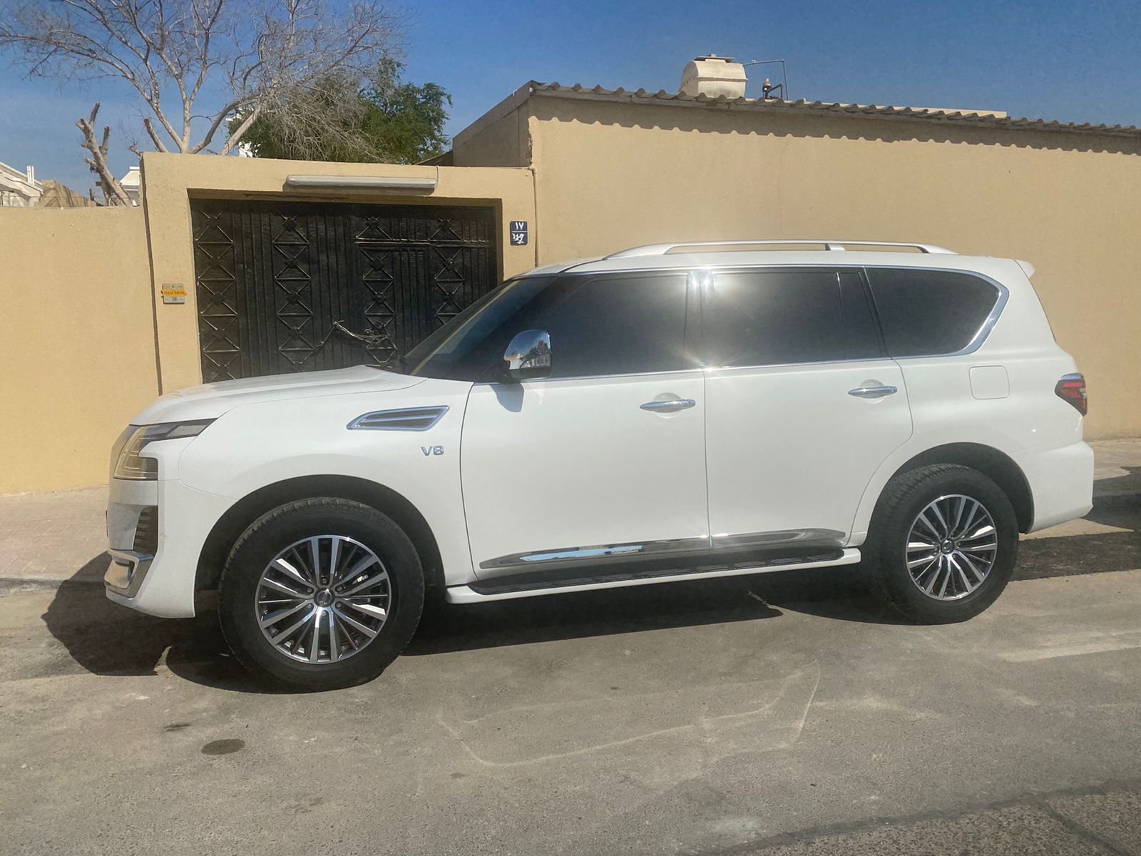 . نيسان باترول أبيض ( Nissan Patrol Platinum ), سيارات دفع رباعى مُدرجة من قبل درايف اسكوير لتأجير السيارات. - 4-أبواب سيارات دفع رباعى تتسع لـ 4 ركاب و 4 حقيبة (حقائب) متوسطة الحجم.