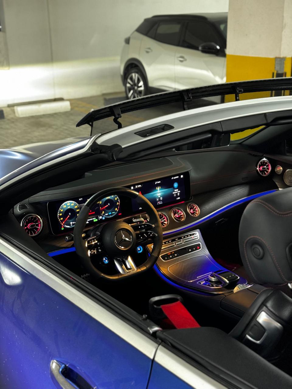 Vous pouvez louer et conduire Mercedes E 53 AMG Blue Cabriolet (BLUE), 2023- mannequin à Dubaï, Émirats Arabes Unis pour le prochain prix - AED 400 par jour, et bénéficiez d'une réduction importante hebdomadaire ou mensuelle. Le coût de la location comprend l'assurance de base et une limite de kilométrage standard de 250 km/jour ou 1 750 km/semaine ou 7 500 km/mois (avec frais de dépassement de limite de 2 AED par km supplémentaire). Dépôt de garantie non nécessaire. Alors n'attendez plus. Si vous souhaitez conduire cette voiture, contactez-nous pour une réservation ou pour toute question dès maintenant.