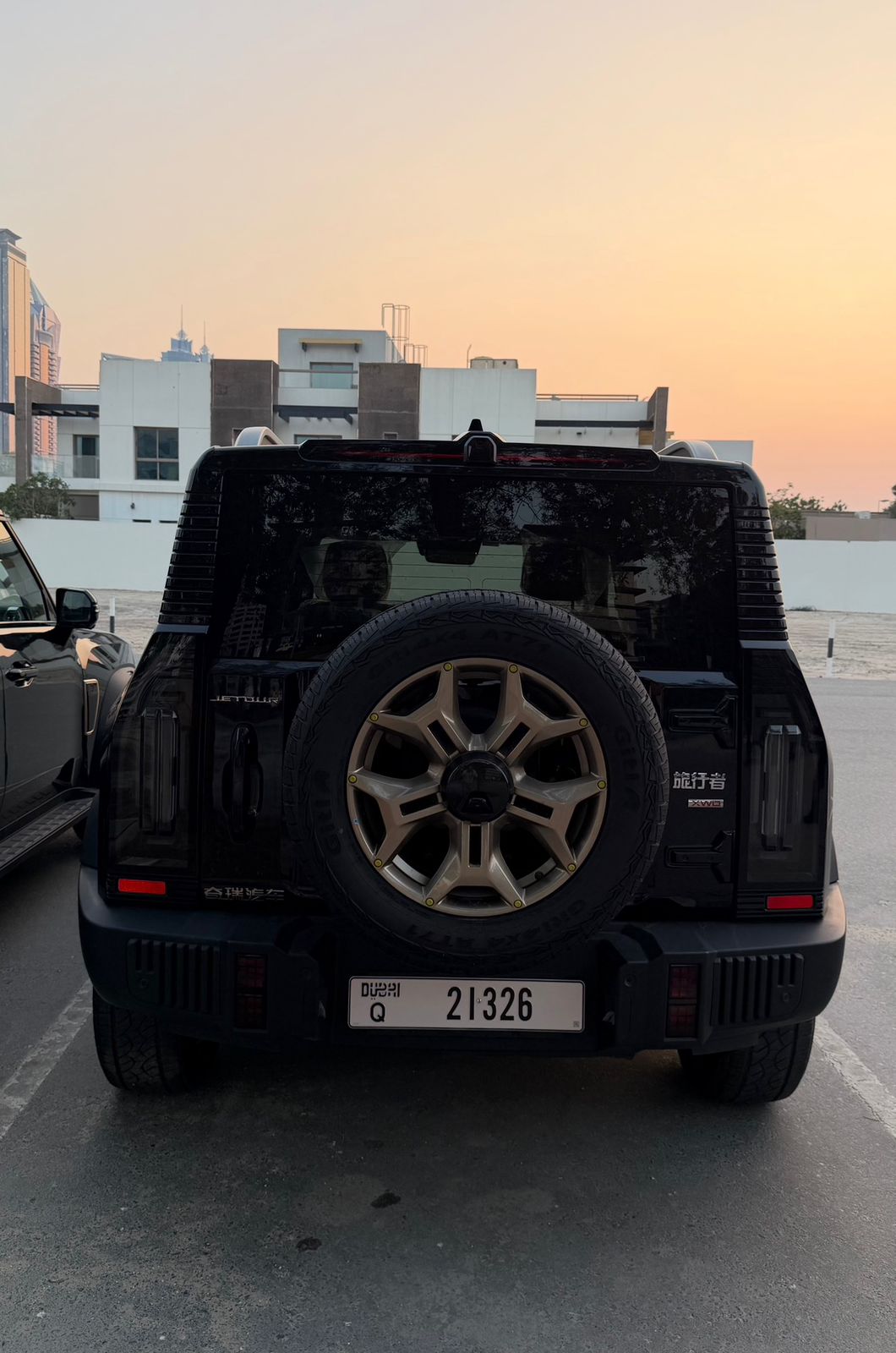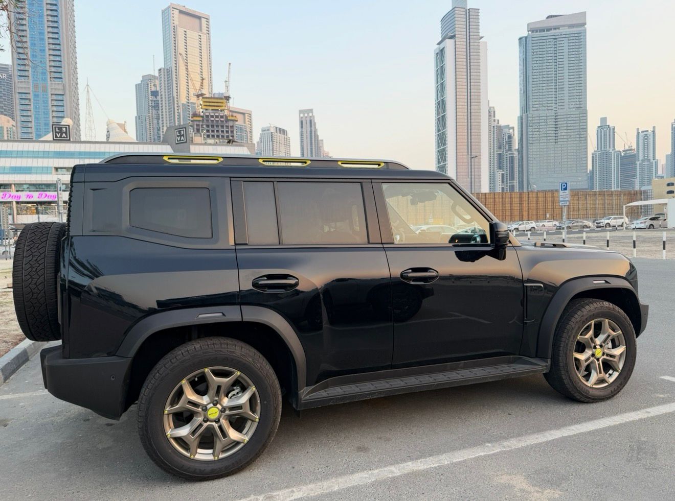 The Jetour T2 Black Best Price SUV Car is listed by Drive Square Car Rental. This 4-door Luxury Car fits 5 passengers and 4 medium-sized bag(s).