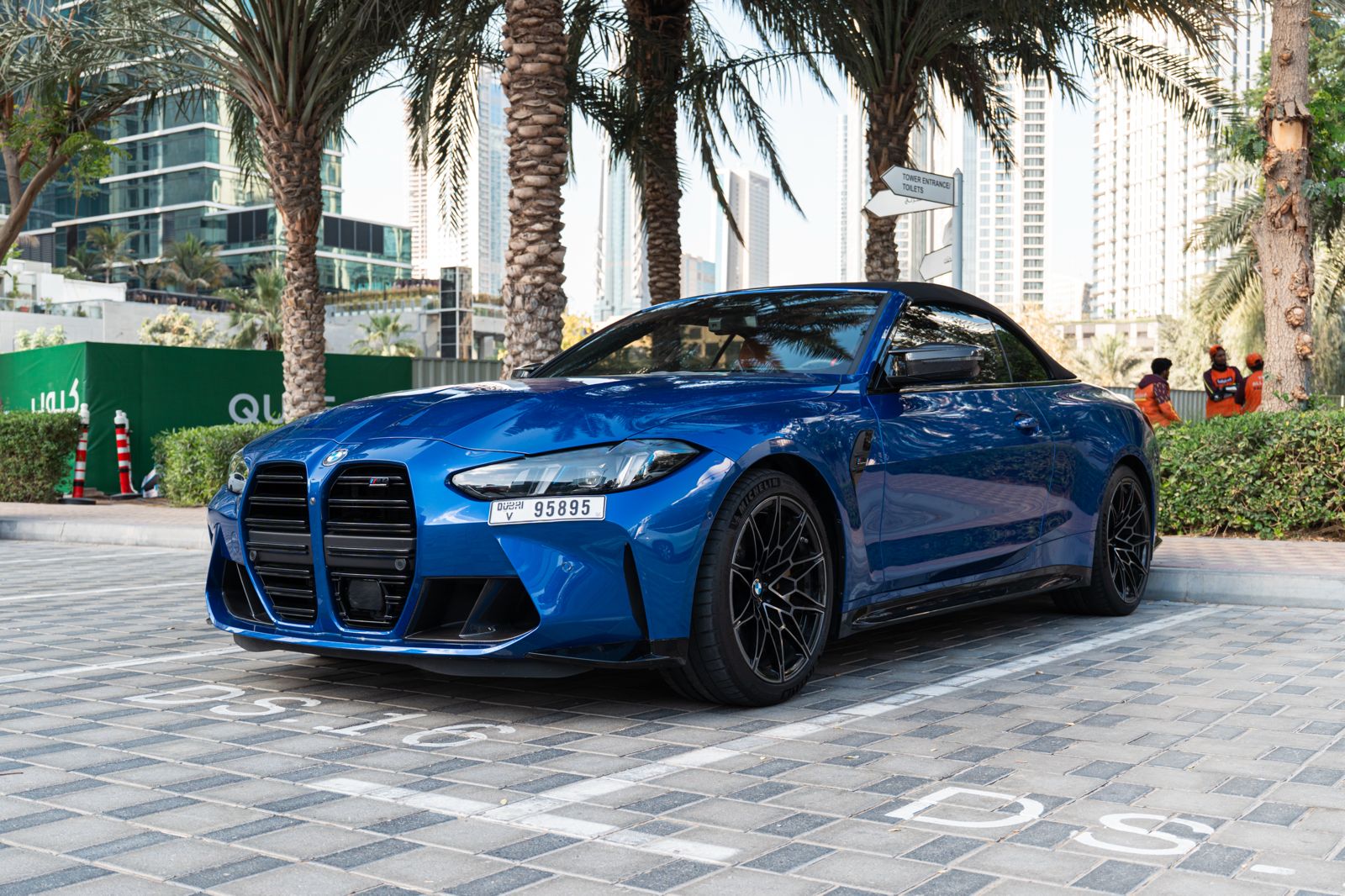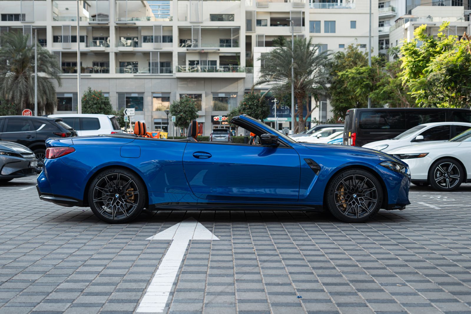 The BMW M4 Competition 510 HP Blue Convertible Car is listed by Drive Square Car Rental. This 2-door Luxury Car fits 4 passengers and 2 medium-sized bag(s).
