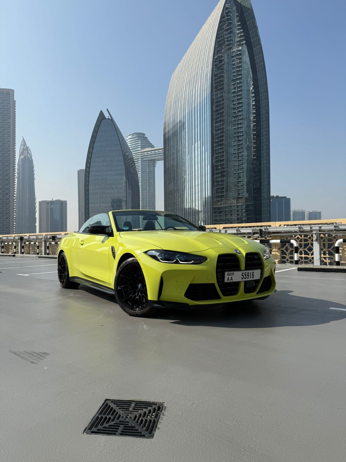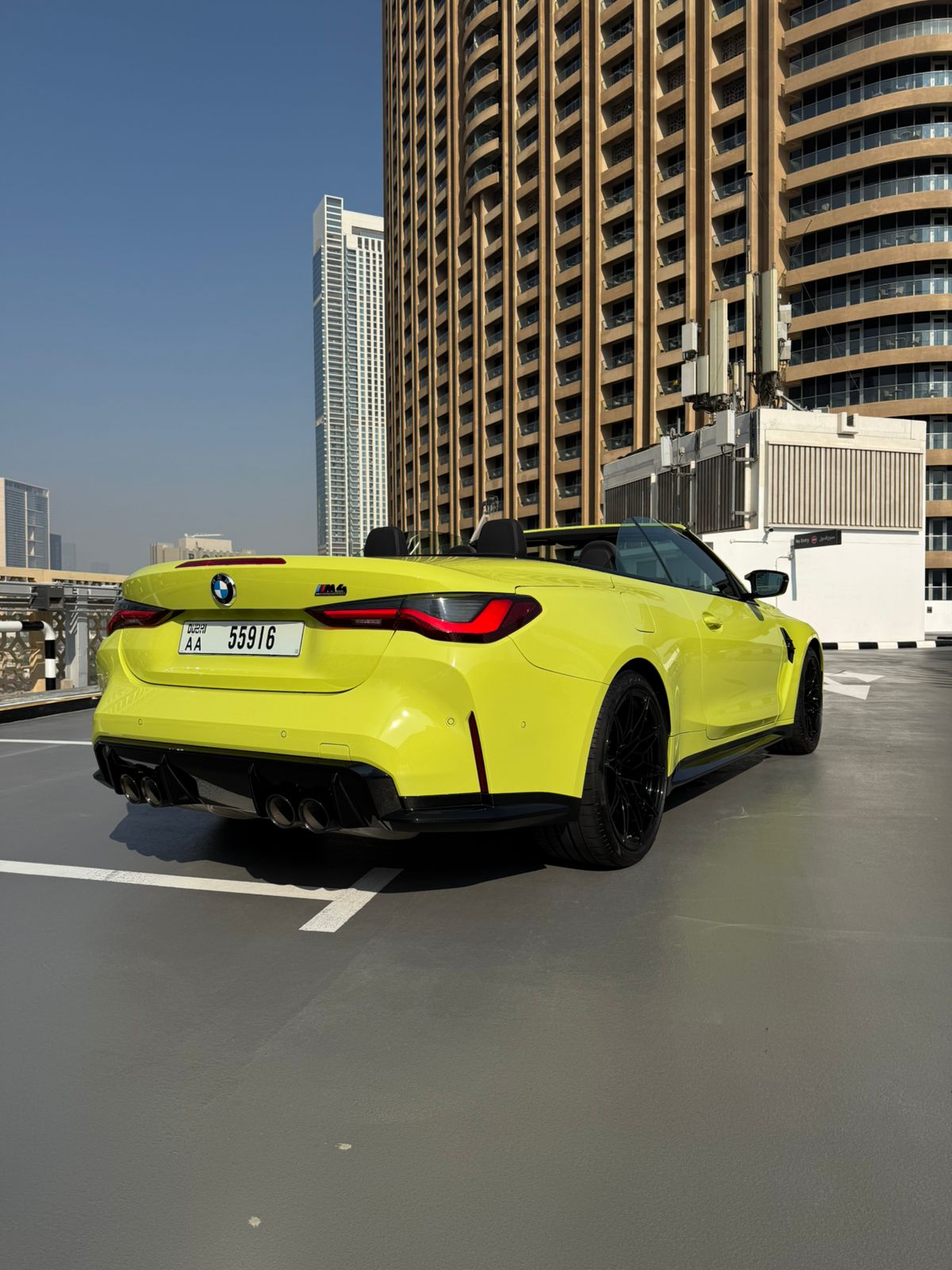 The BMW M4 Competition Yellow No Deposit1 Convertible Car is listed by Drive Square Car Rental. This 2-door Luxury Car fits 4 passengers and 2 medium-sized bag(s).