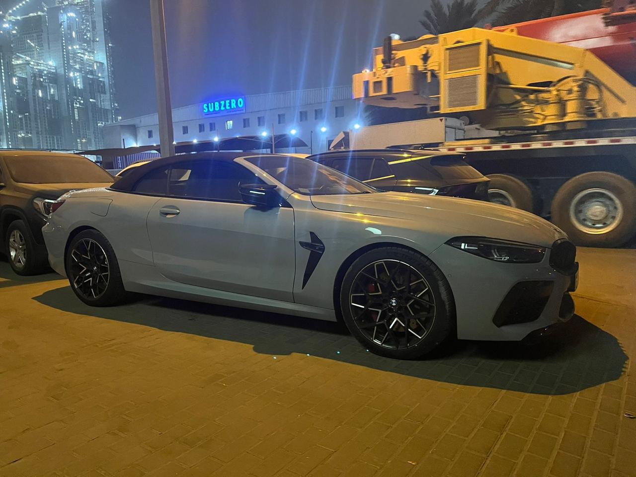 The DriveSquare Advantage: When you rent the BMW M8 Competition Convertible Gray high-performance 2023 , you don't just get a car; you get a seamless experience with Free Delivery to your doorstep and comprehensive basic insurance included.