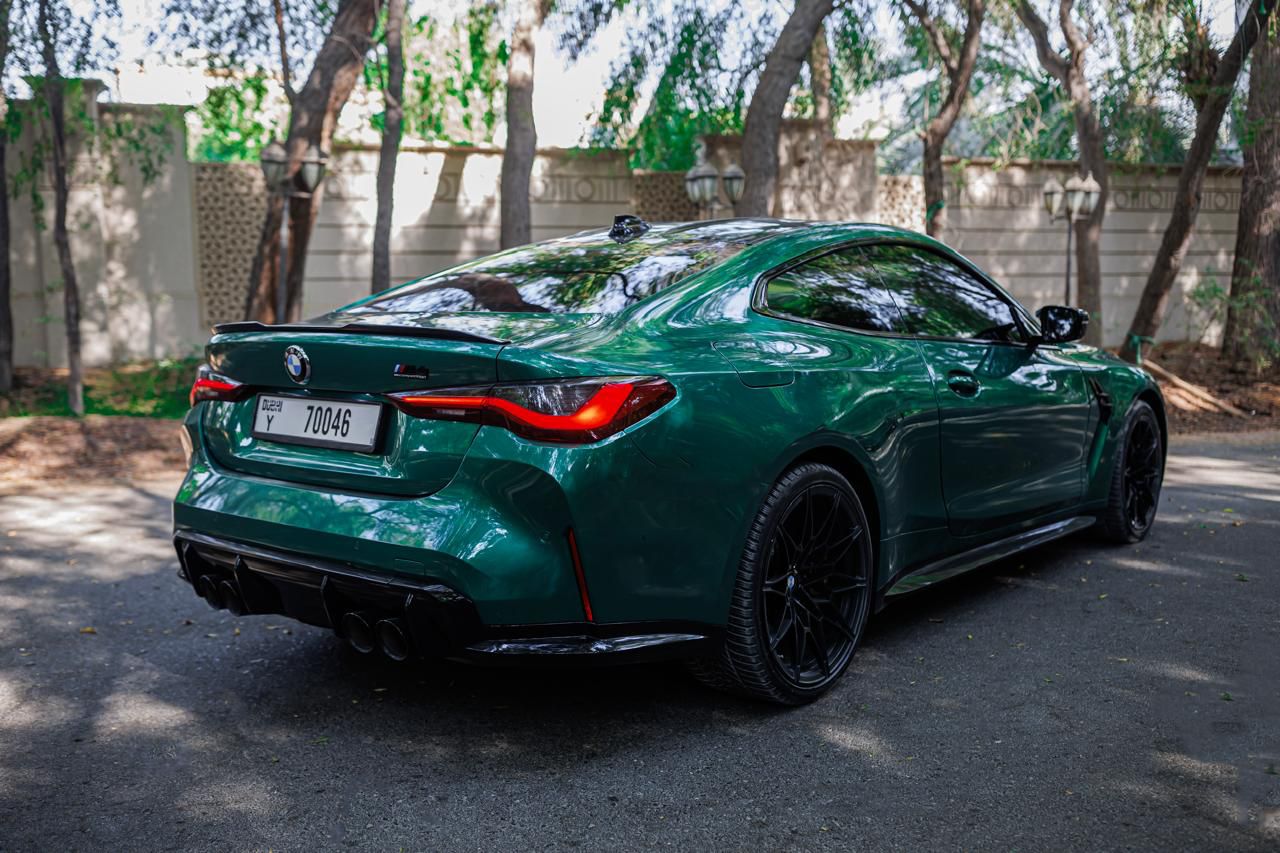 Rent BMW M4 Competition Coupe Green 2023 in Dubai, UAE, No Deposit , Free Delivery for the next price - AED 950 per day, And get a Great discount weekly or monthly . Rental cost includes basic insurance and standard mileage limit of 250 km/day or 1750 km/week or 7500 km/month (with overlimit charge AED 2 per additional km). So, don't wait any longer. If you want to drive this car - contact us for booking or any question right now.