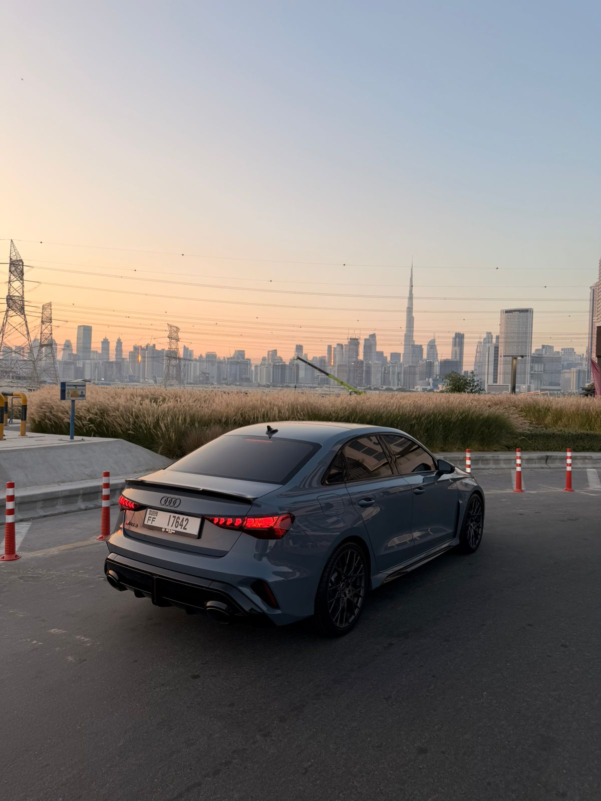 The Audi RS3 Best Price Sedan Car is listed by Drive Square Car Rental. This 4-door Luxury Car fits 5 passengers and 3 medium-sized bag(s).