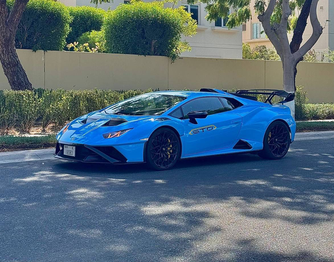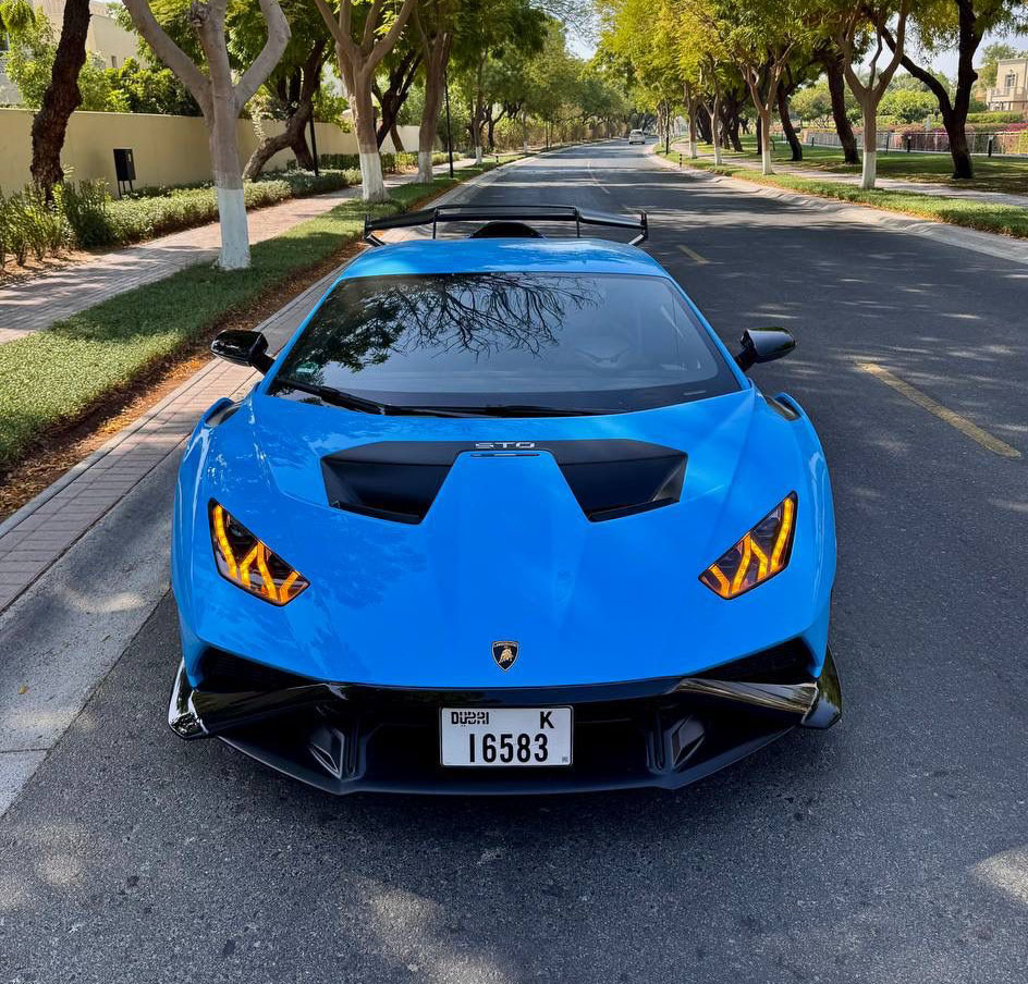 Rent Lamborghini Huracan STO V10 Blue 2024 in Dubai, UAE, No Deposit , Free Delivery for the next price - AED 3100 per day, And get a Great discount weekly or monthly . Rental cost includes basic insurance and standard mileage limit of 250 km/day or 1750 km/week or 7500 km/month (with overlimit charge AED 2 per additional km). So, don't wait any longer. If you want to drive this car - contact us for booking or any question right now.