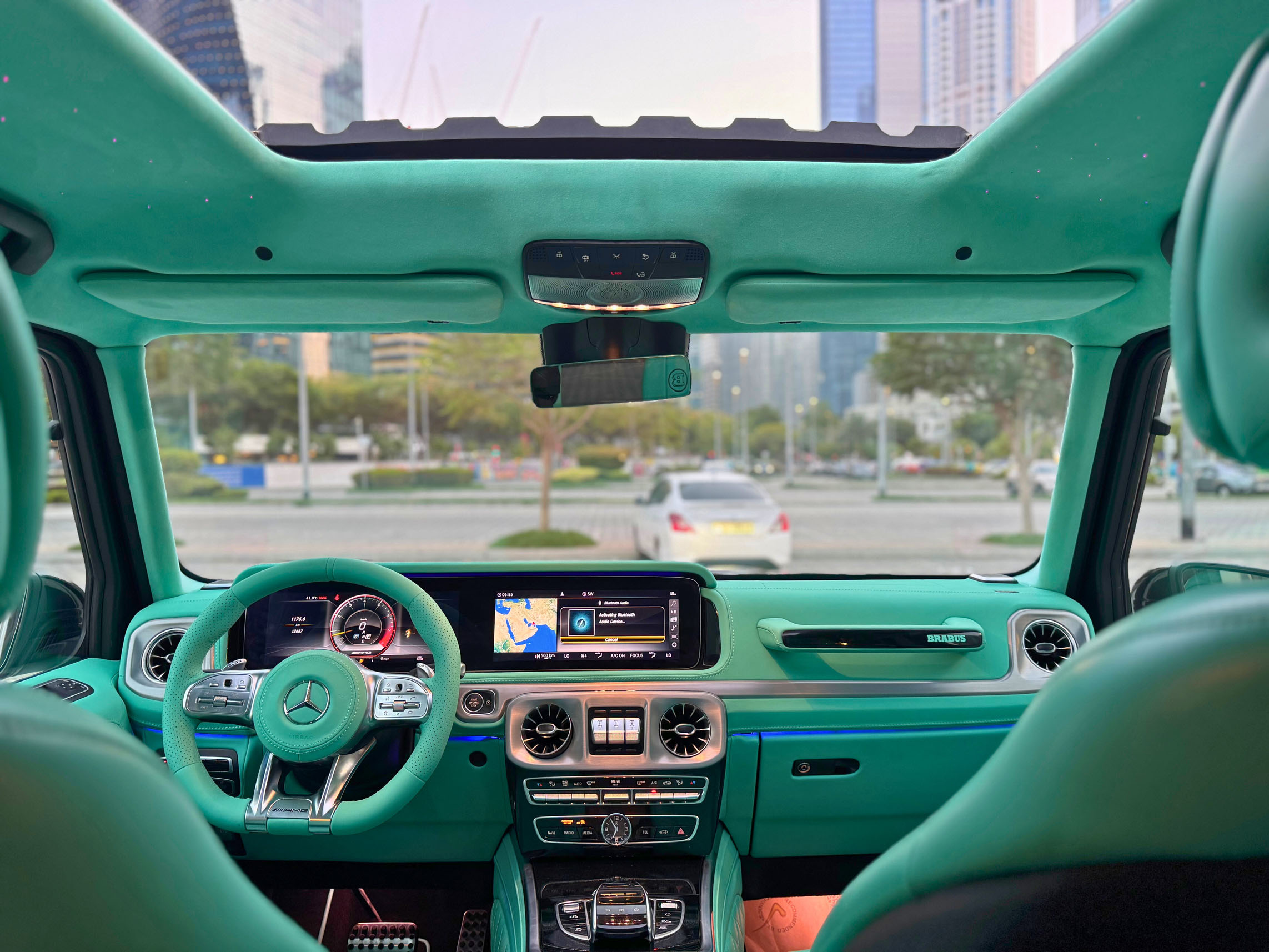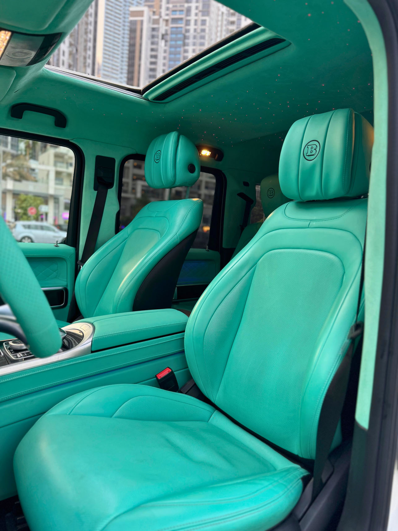 - Trim & Finishes: Alcantara headliner, carbon fiber accents, illuminated Brabus door sills.